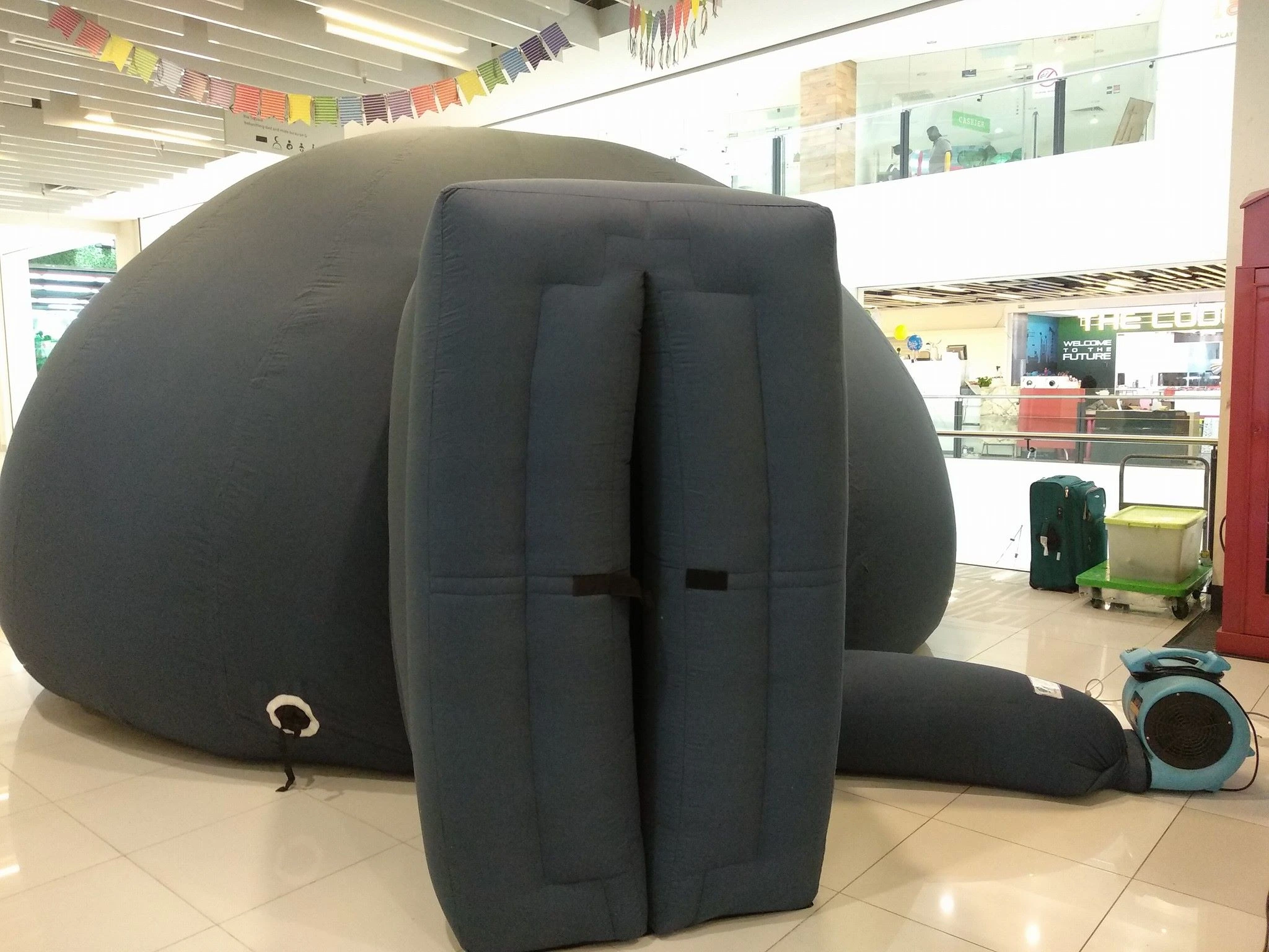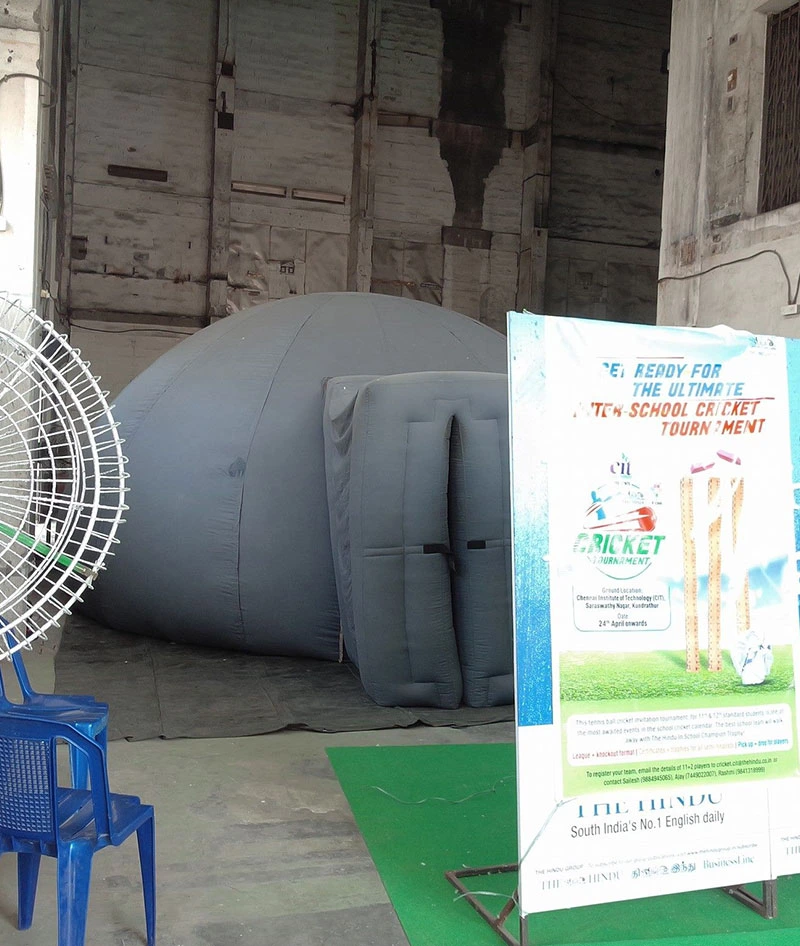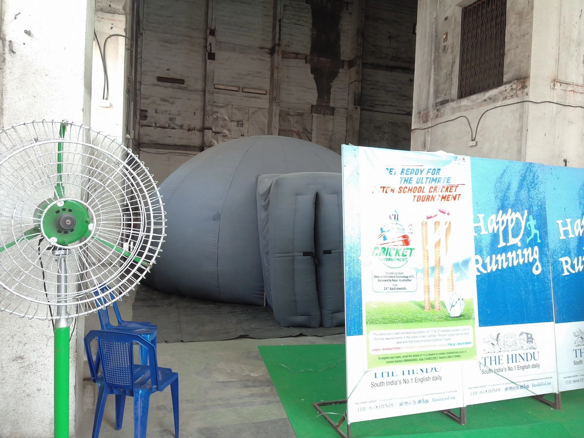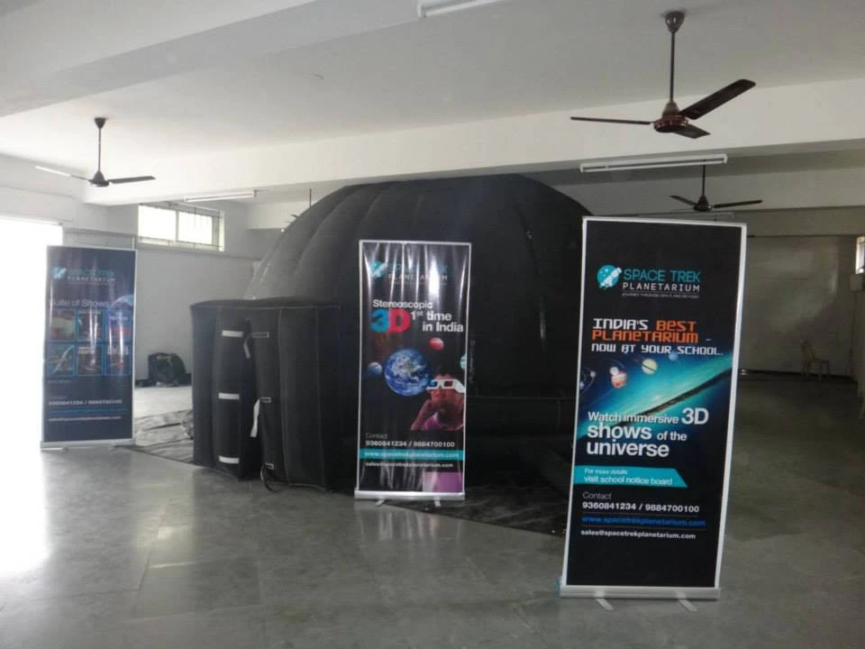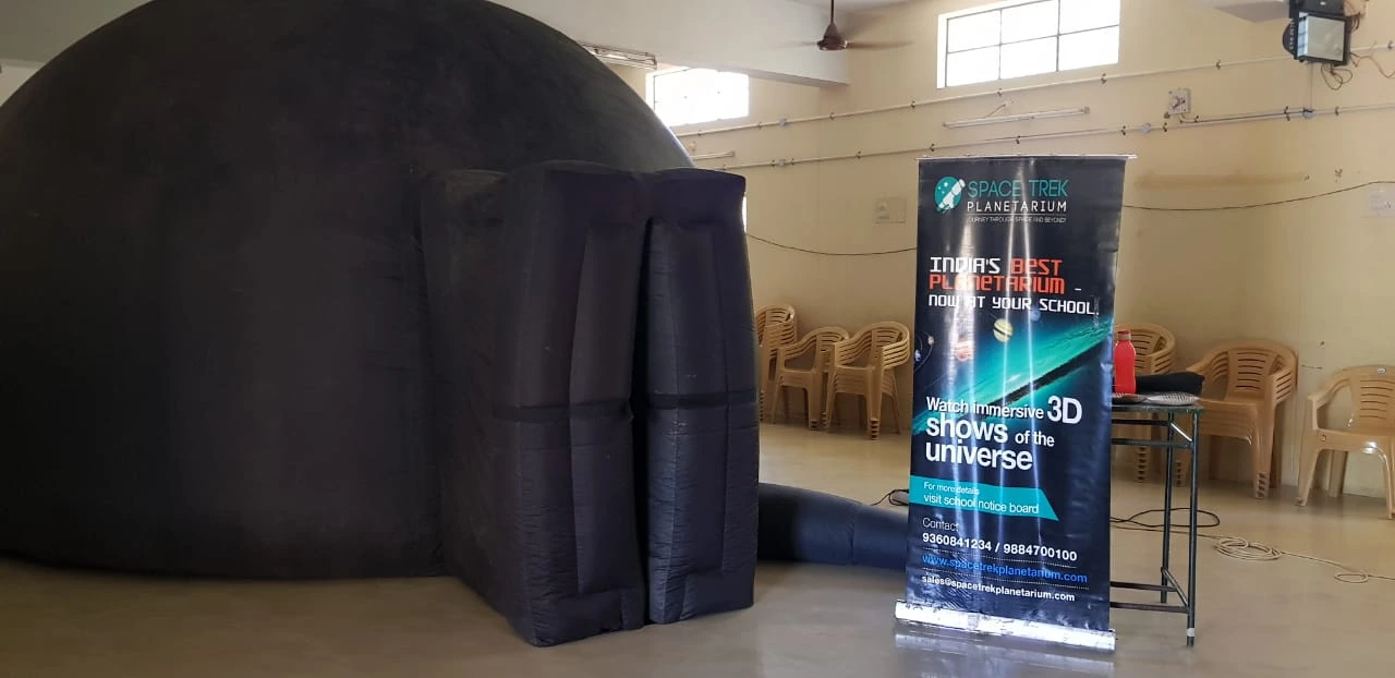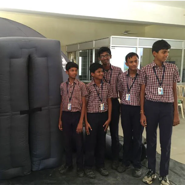 Yes! The mobile planetarium dome is fully portable and can be easily installed in classrooms, small halls, or auditoriums. It requires minimal setup space and runs on basic power supply. Our team ensures safe installation, ventilation, and seating arrangements for all participants. The dome sizes are adjustable, accommodating both small and large groups comfortably, so every school — regardless of size — can host an incredible space experience.